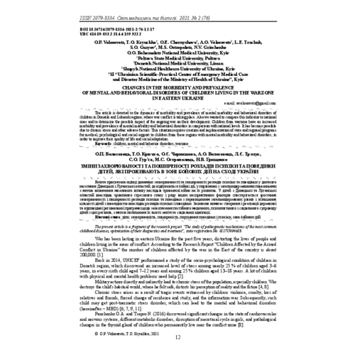 - Panchenko OA, Tsapro NP. Somatyzatsiya poststresu u ditey v zoni ATO Materialy Vseukrayinskoyi naukovo-praktychnoyi konferentsiyi ‟Psykhosotsialna pidtrymka osib z travmoyu viyny: mizhnarodnyy dosvid ta ukrayinski realiyi‟. 28.02.2018. Mariupol. DonDUU; 2018: 138-142. [in Ukrainian]