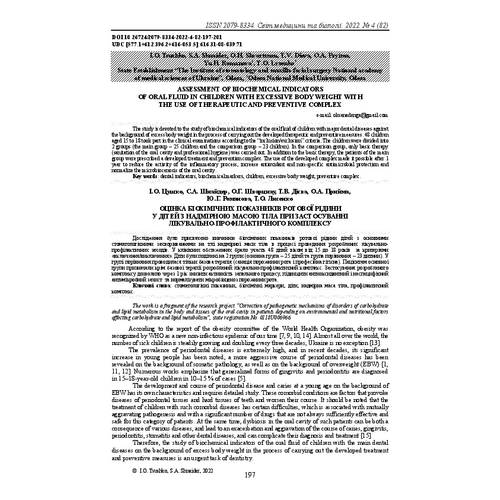 «World of Medicine and Biology» №4(82), 2022 year, 197-201 pages, index UDK [577.1+612.396.2+616-053.5]:616.31-08-039.71 |