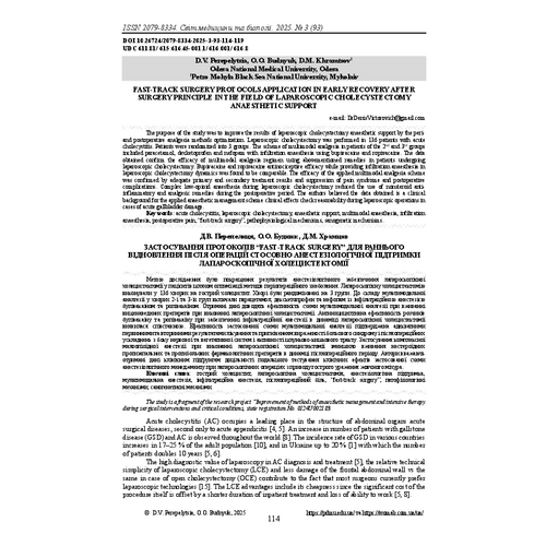 - Galushko OA, Mamchych VI, Donets VV, Chayka MA. Osoblyvosti anesteziolohichnoho zabezpechennya laparoskopichnykh operatsiy pry hostromu kholetsystyti. Medytsyna nevidkladnykh staniv. 2019; 5(100): 45-49. doi: 10.22141/2224-0586.5.100.2019.177017. [in Ukrainian].