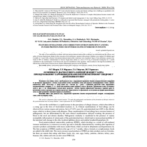 - Anushenko AO, Potapov AS, Tsimbalova EG, Gordeeva OB. Anemiya pri vospalitelnykh zabolevaniyakh kishechnika u detey. Voprosy sovremennoy pediatrii. 2016; 15(2):128–140. [in Russian]