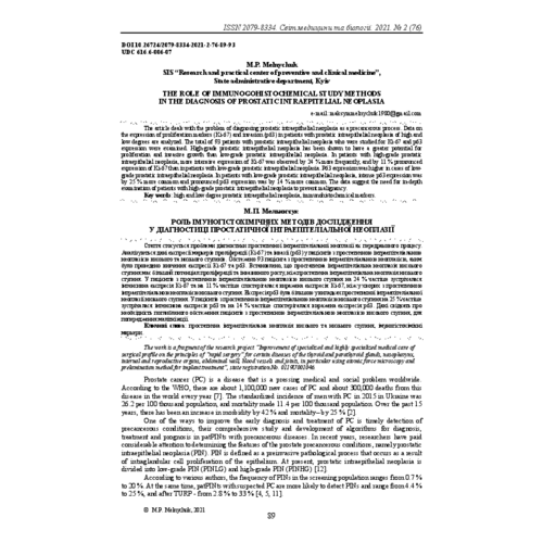 - Saidakova NO, Hryhorenko VM. Rak prostaty: zakhvoriuvanist v Ukrayini. Urolohiya 2015; 19 (3):48–54. [in Ukrainian]